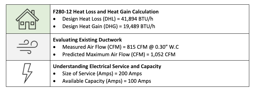 From an initial home evaluation, the following technical factors need to be considered to inform the heat pump retrofit: