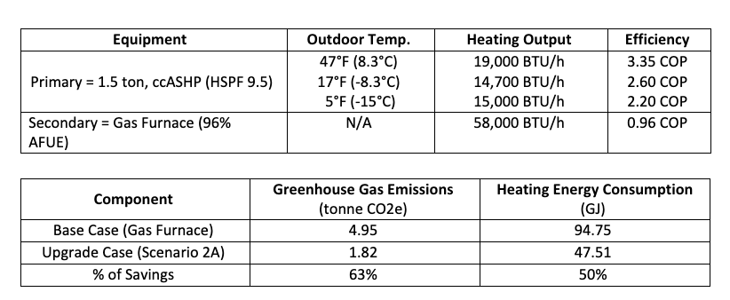 Scenario 2A – Dual Fuel (Hybrid) Heating with 1.5 Ton Cold Climate Heat Pump and Gas Furnace Supplemental