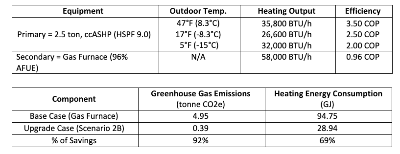 Scenario 2B – Dual Fuel (Hybrid) Heating with 2.5 Ton Cold Climate Heat Pump and Gas Furnace Supplemental